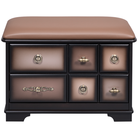 Каркас тумбы и ящики выполнены из высококачественной МДФ. Поверхность тонирована, патинирована и покрыта лаком. Ящики выполнены из МДФ. Фурнитура из латуни испанского производства.