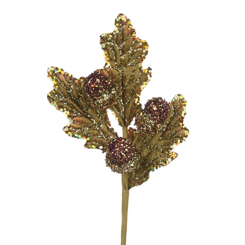 Цветы GW П53010 Ветка с листьями с блестками шампань золотой
