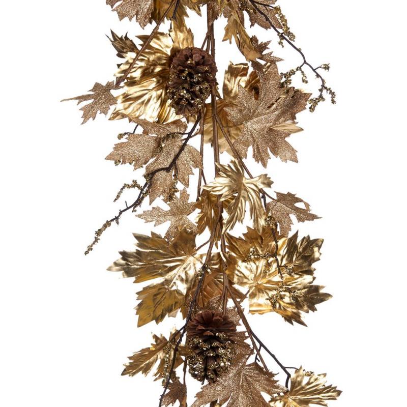 Цветы GW П53010 Ветка с листьями с блестками шампань золотой