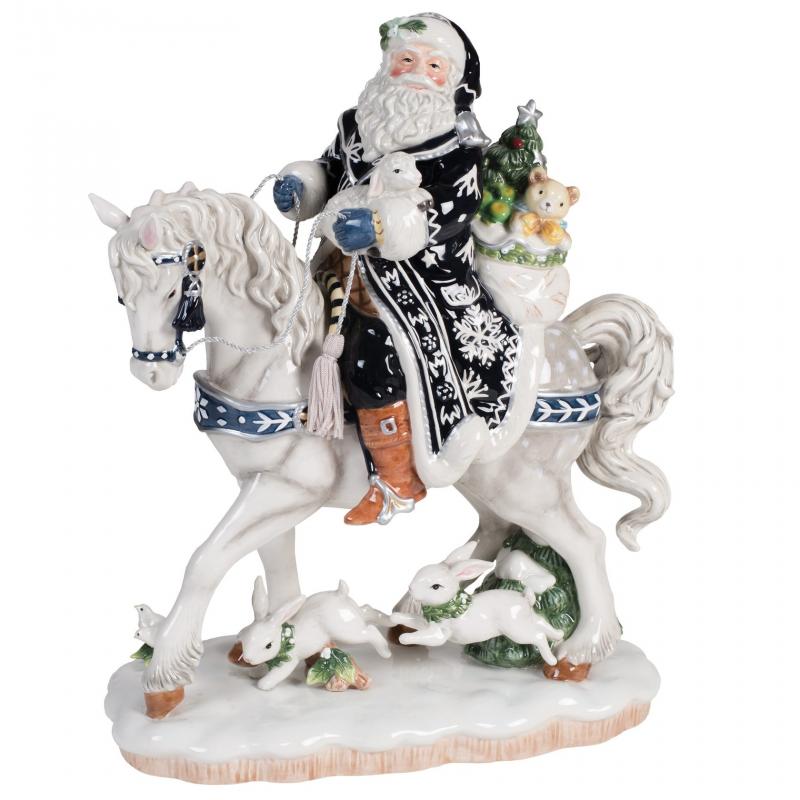 Фигура Fitz&Floyd Бристоль 49-624 Дед Мороз на лошади бело-синий