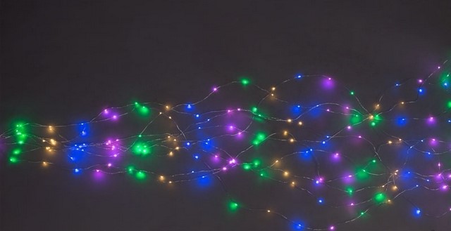 Длина Подводящего кабеля - 1м. Количество световых линий: 20. Цвет провода : серебристый. Цвет LED огней : разноцветный. Расстояние между лампами : 10 см. Класс защиты : IP20.