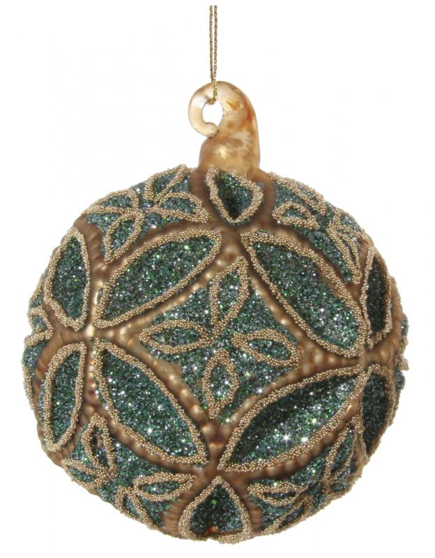 Елочная игрушка ИТАЛИЯ 47295 Стеклянный цветочный шар золотисто-коричневый 8 см зеленый