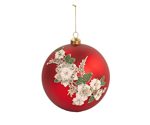 Елочная игрушка ИТАЛИЯ 27185 Шар с белыми цветами красный