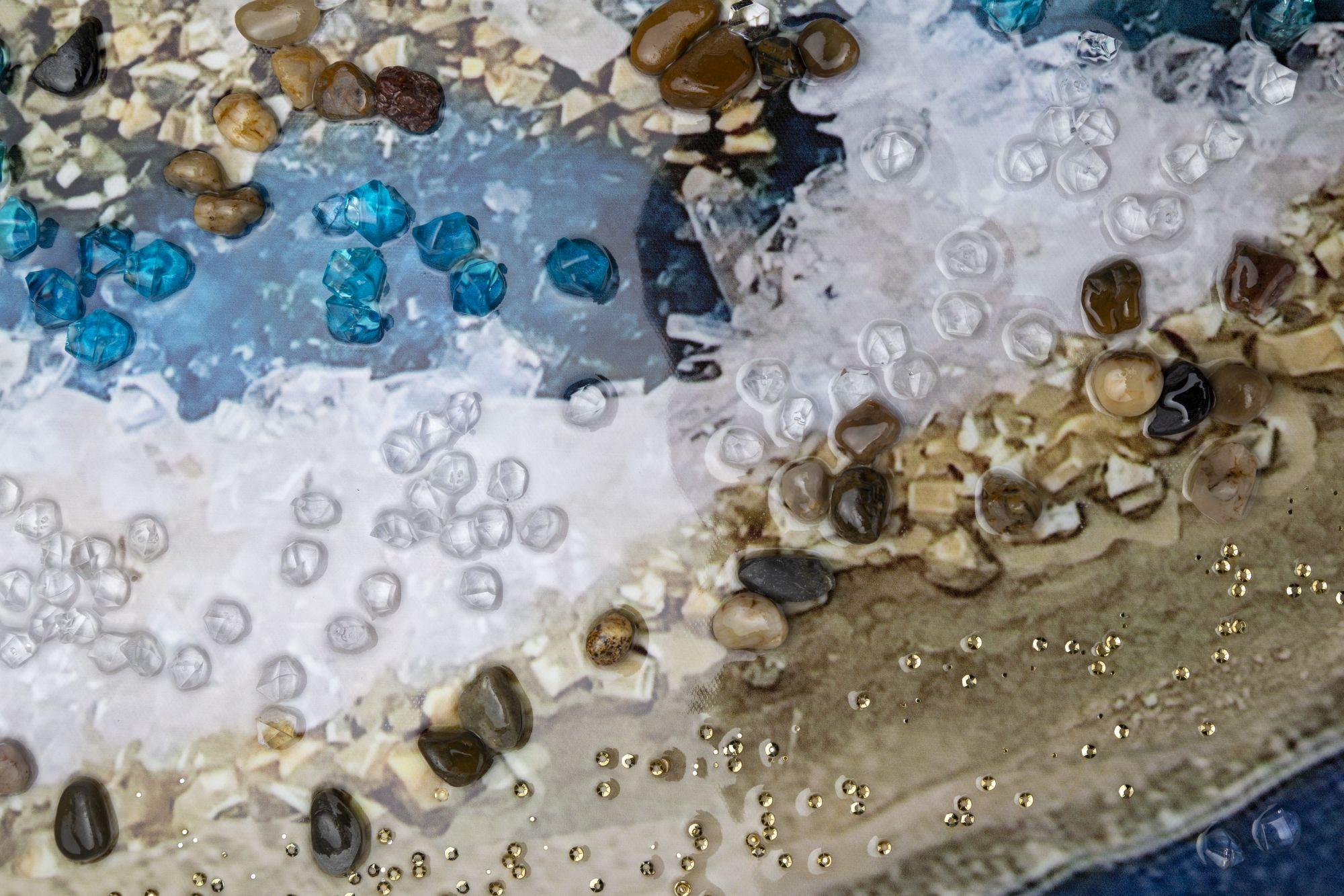 Картина выполнена путем печати на холсте и нанесения страз и камней.