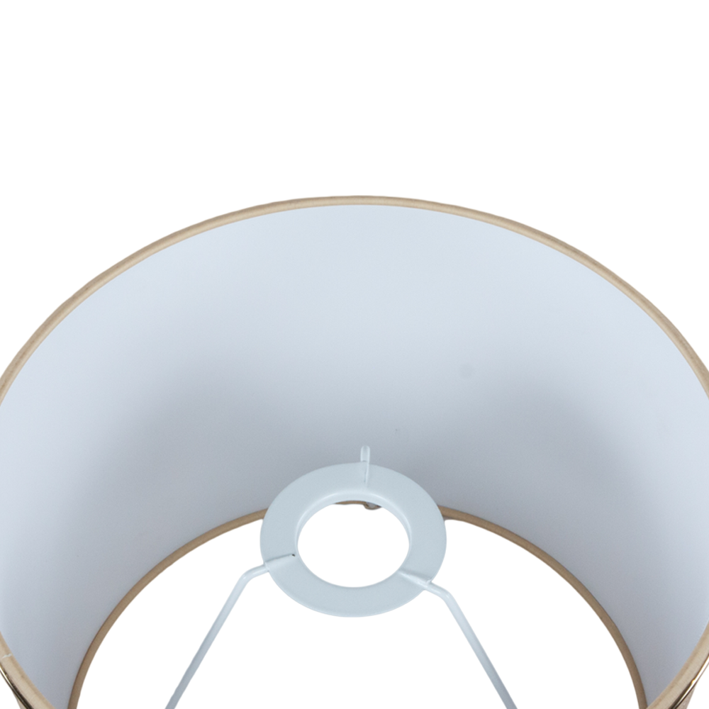 Абажур с нижним способом крепления, имеет конструкцию, основой которой служит металлический каркас с применением технологии порошковой покраски и креплением под цоколь E27(стандартный – Ø 4 см). Высота абажура указана от крепления. В отделке используется Голландский пластик обтянутый тканью - Абажур декорируется золотым молдингом. Мощность ламп: 60W