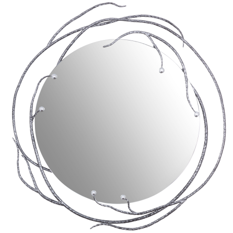 Зеркальное полотно закреплено на металлической раме из легированной стали. Декоративные элементы отлиты из натурального коелгинского мрамора, отшлифованы и патинированы вручную.