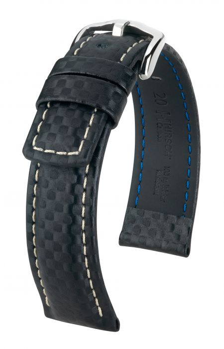 Ремень для часов 22мм Hirsch Carbon 025920-50-2-22 кожа телячья черный с пряжкой