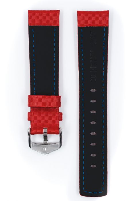 Ремень для часов 20мм Hirsch Carbon 025920-20-2-20 кожа телячья красный с пряжкой