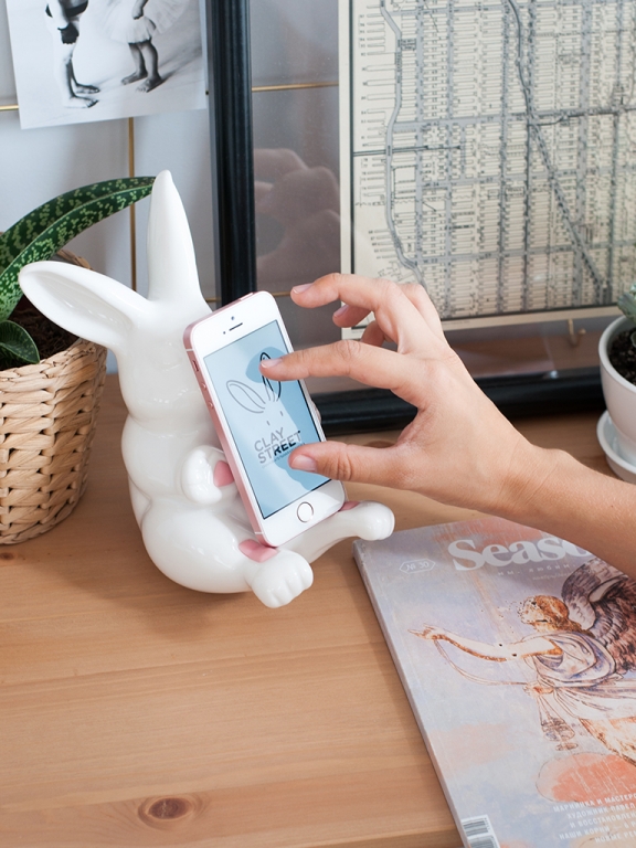 Держатель для телефона Clay Street D144.8 "Малыш - Пухлик", серые вставки белый 18×18 см