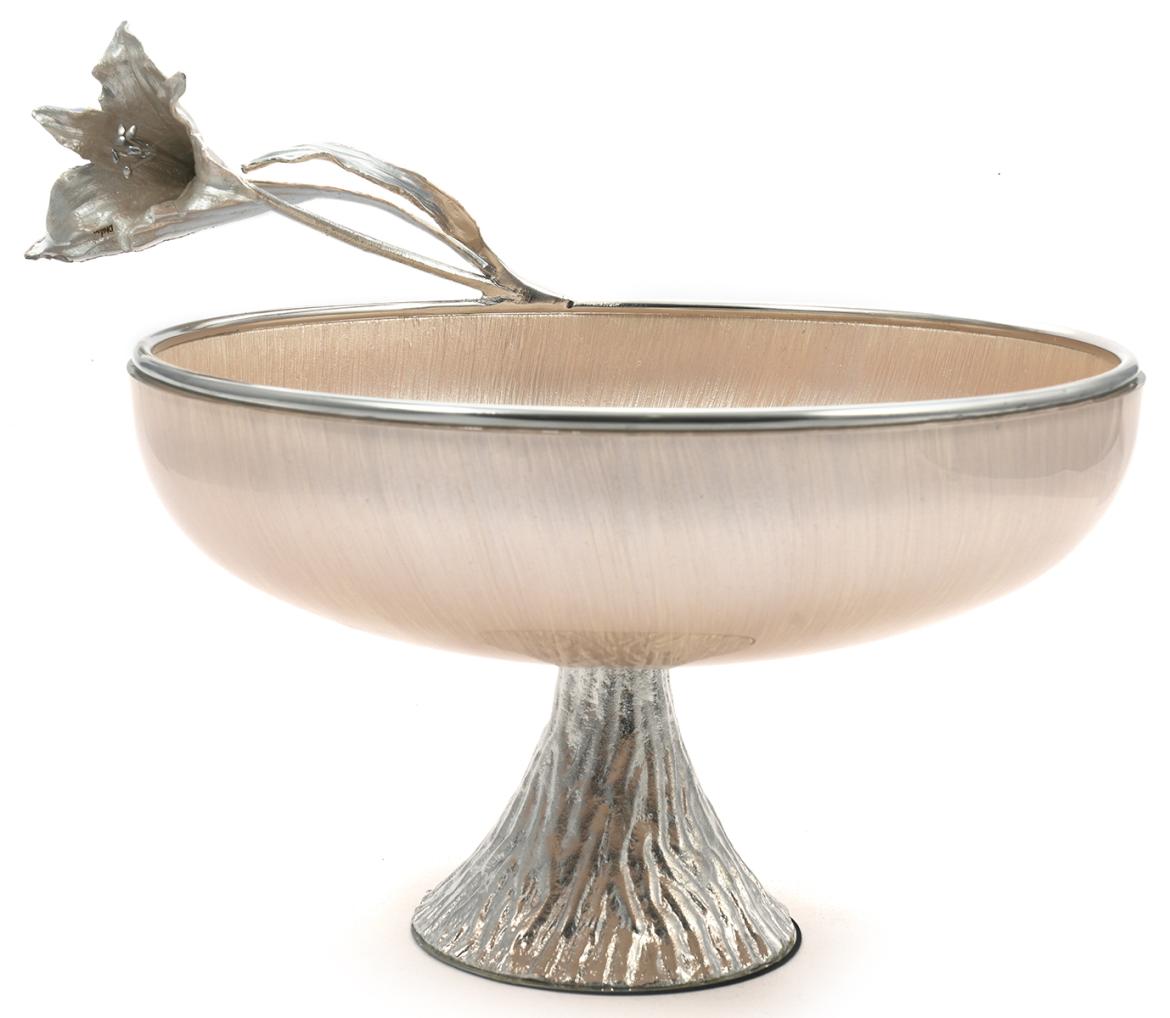 Чаша сервировочная Rhyton Lilium 3230458 жемчужно-белое стекло серебро 30×35 см