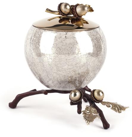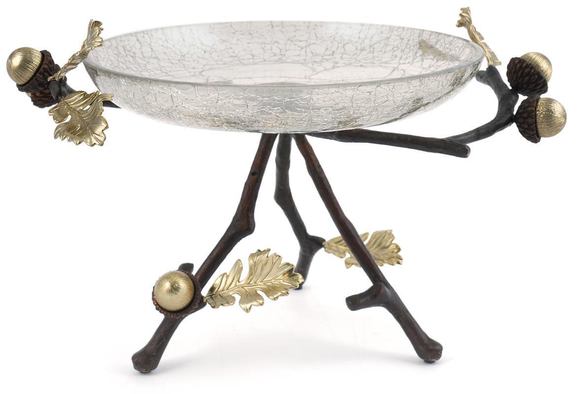 1. Стеклянное блюдо с дубовой веткой из латуни