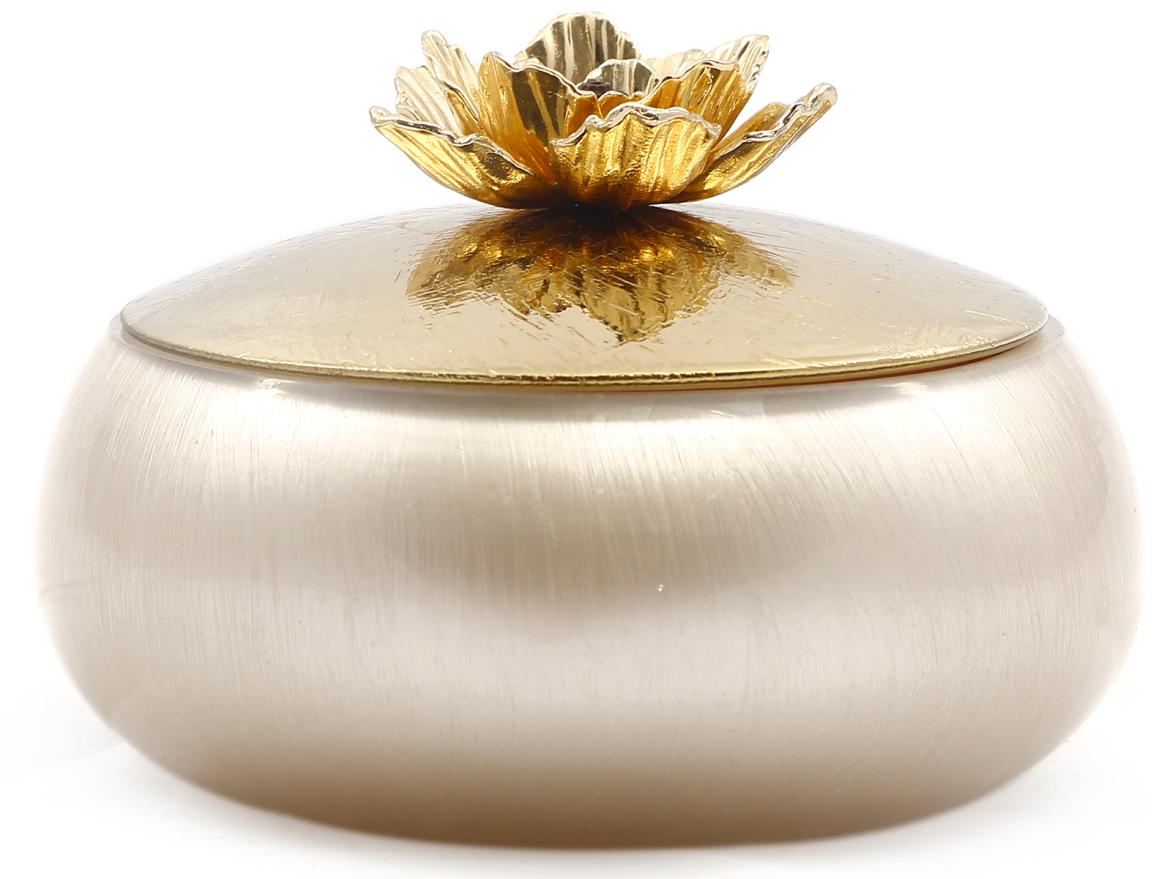 Чаша с крышкой Rhyton Mehr 3230484 жемчужно-белое стекло золотой 13×10 см