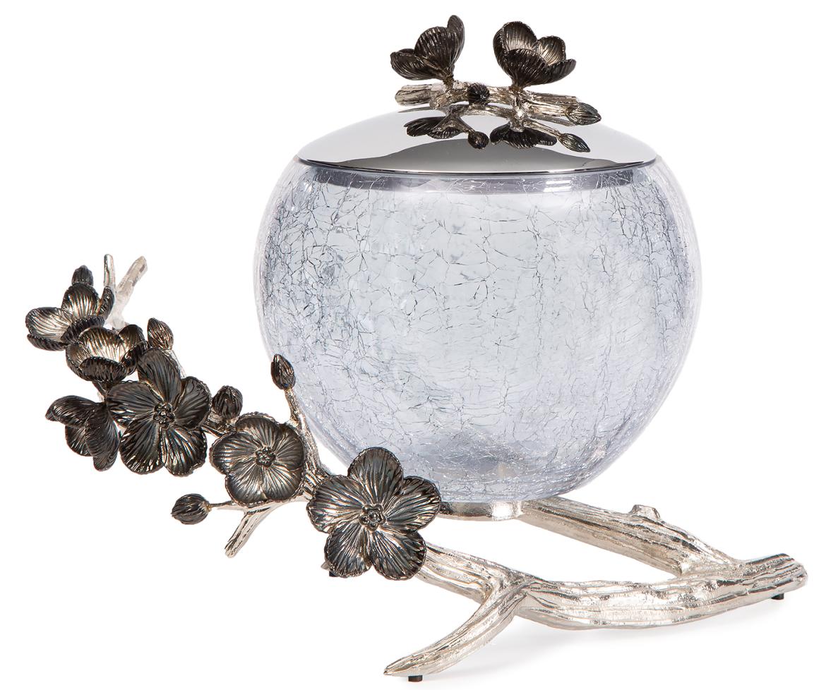Чаша с крышкой Rhyton Marina 3230121 голубое стекло серебряный, черный 23×15 см