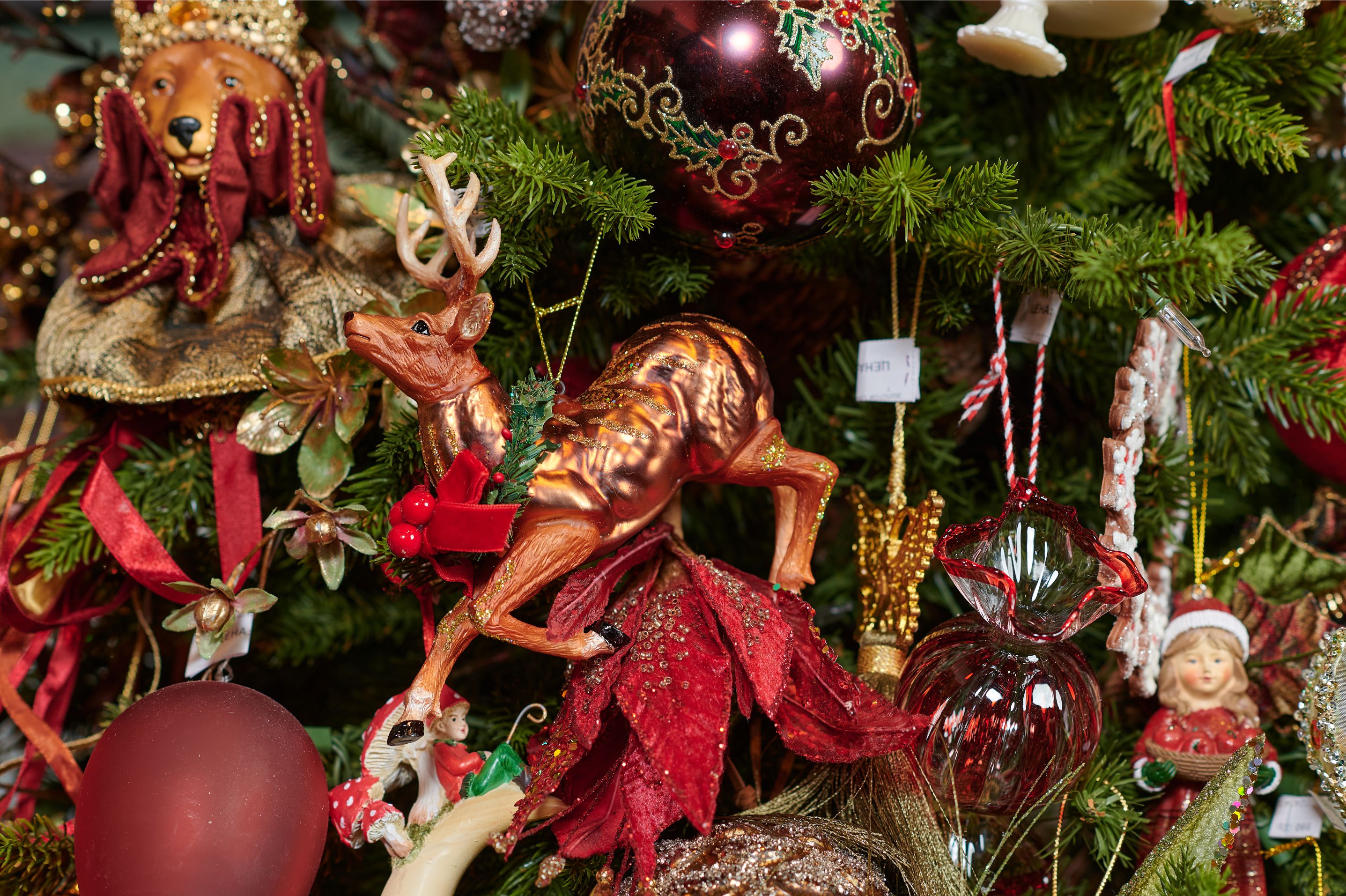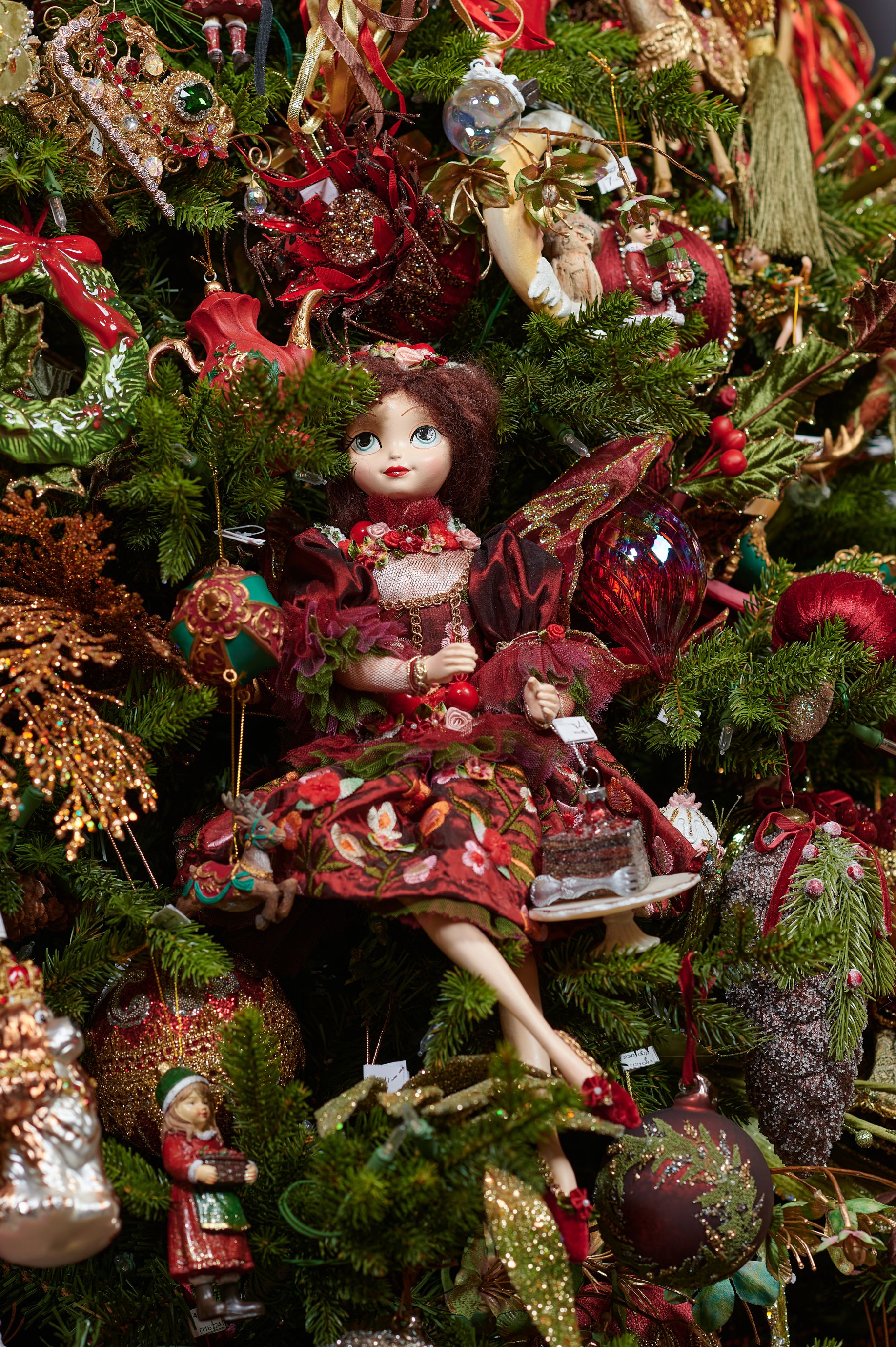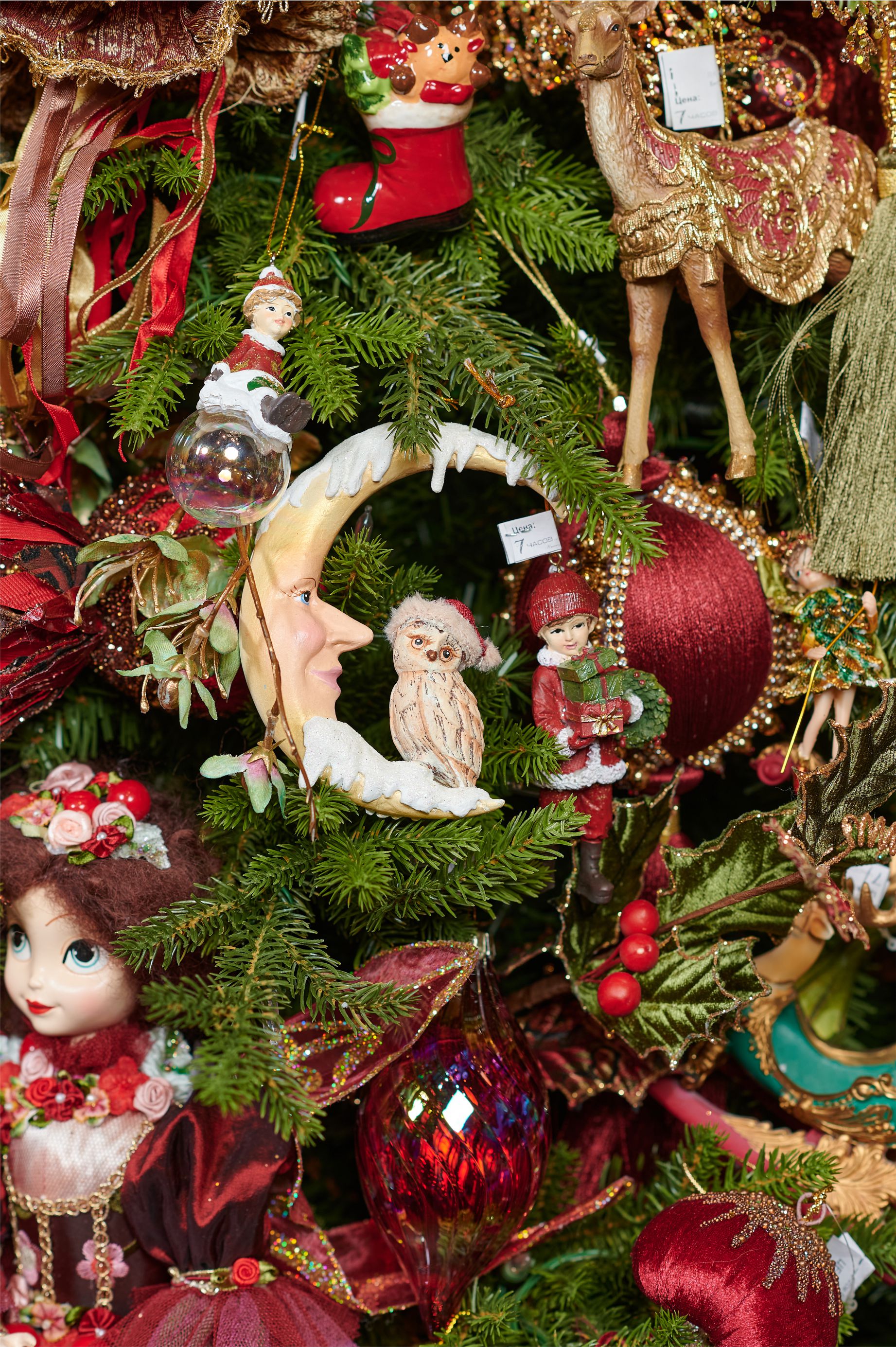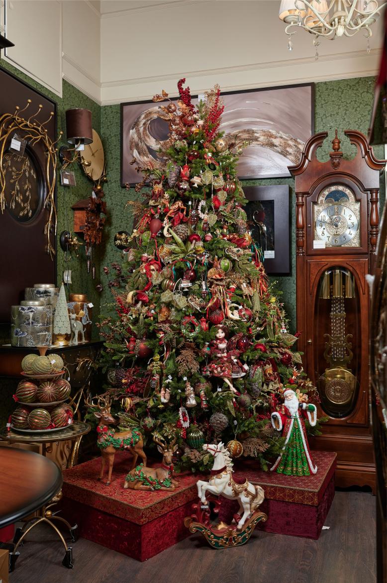 Авторская наряженная елка 7 Часов №4 Золотой, зеленый, красный зеленый